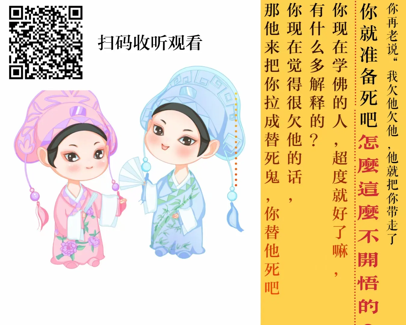 台-长答:是,哎哟,还有一点点溃烂(是的。师父,我很害怕)犯邪淫,过去的邪淫所致啊。现在知道怕了?我就跟你们说了,你们女孩子自己不好好地守守那种正能量……不要跟这个男的、跟那个男的,将来会出事的(师父,我错了)很多男人把你当一个好人吗?他们不一样的,想法不一样的,他也不是想娶你做老婆的,不爱护、不爱惜的。现在我看你有点麻烦了,可能要动手术了(师父,我前天还是哪天做了一个梦,梦里面有一个老婆婆,我说:“我是该去医院还是在家里?”她说:“去医院的话,乳头就保不住了。如果是在家里,还……”)是啊,也没办法了。有什么关系了,你要是真的……因为我现在看它溃烂蛮厉害的,保不住就保不住了,反正以后清修了,对不对?(师父,能不能保住……有没有办法保住?我不想丢掉,我努力了一年,我就希望能够保住它)要什么面子?你自己啊……保住,你以后还会犯贱(师父,我真的保不住了吗?呜呜……)是啊,我现在看很危险的,因为现在看你右乳房靠左面的这个地方整个一片都是黑的,就是说如果要动手术,要挖掉你整个,否则怕扩散,你听得懂吗?(现在有没有扩散?呜呜……师父,救救我……)早干吗了?早叫你们念经修心,叫你们好好守戒,不听话的。你现在这样,你现在为了保持,先不要让它扩散吧,你不扩散的话也就是拖时间,要好起来是比较难的。因为我看这个乳房这里海绵体的组织已经有点损坏了,它里边是一丝一丝的,都是黑气。所以你最好的方法,先保持不要让它再发炎,不要去碰它,然后看看消炎行不行,而且还要搽一点芦荟胶(我最近一直在搽芦荟胶)慢慢地延续吧,我相信你过一个半月都不一定过得了,一个月之后如果没有什么特别大的问题,你有这个机会吧。机会是20%~30%可以保住(我就是在家里,先这样子维持,如果能过得去……)对,能过得去就过。你要做好思想准备的。我跟你说,人的一生很多东西都不是你的,明白了吗?[电话掉线]乖一点了,自己要好好地改毛病的。要念经,许大愿,求观世音菩萨。