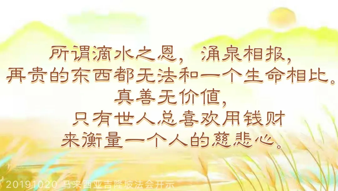 所谓滴水之恩,涌泉相报,再贵的东西都无法和一个生命相比。真善无价值,只有世人总喜欢用钱财来衡量一个人的慈悲心。