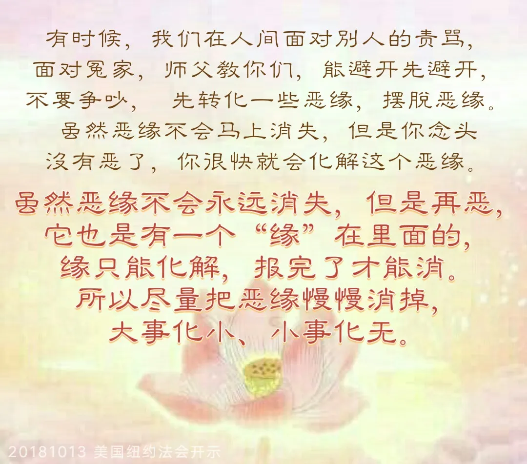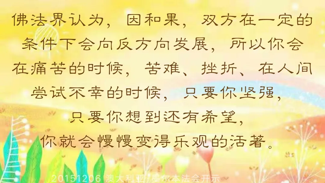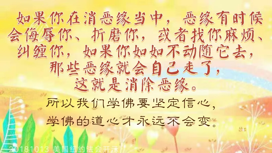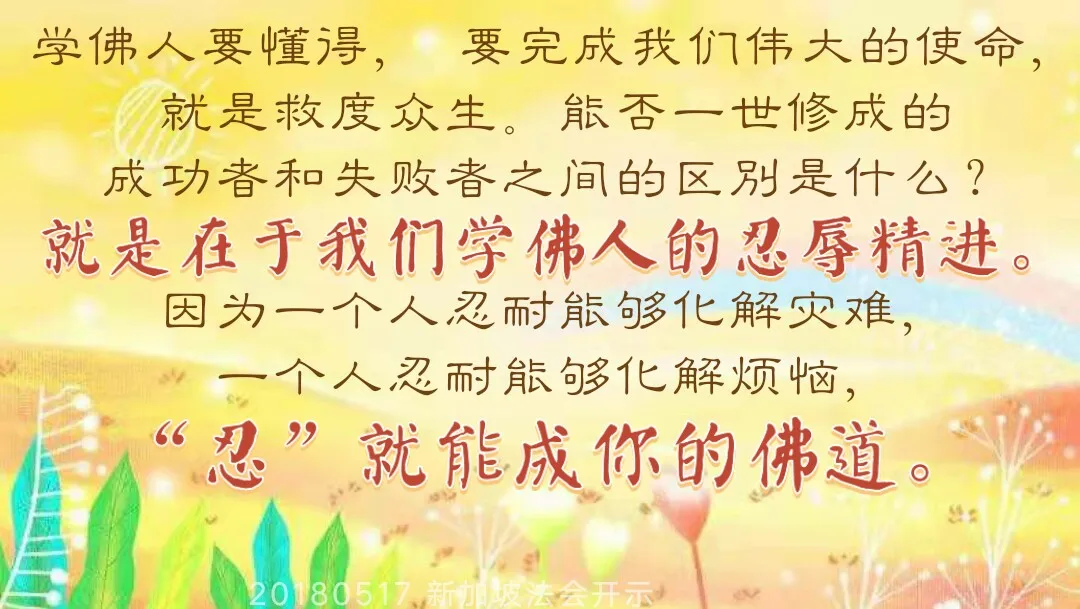 这个故事告诉我们,克制自己就是成功的要素。很多人就是因为世界上很多的名闻利养而不能克制自己,这个也要、那个也要,不能把自己的精力投入到他们的事业当中。学佛人要懂得, 要完成我们伟大的使命,就是救度众生。能否一世修成的成功者和失败者之间的区别是什么?就是在于我们学佛人的忍辱精进。因为一个人忍耐能够化解灾难,一个人忍耐能够化解烦恼,“忍”就能成你的佛道。