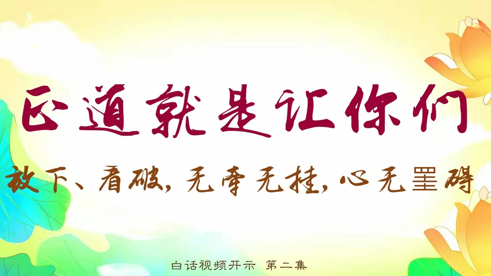 正道就是让你们放下、看破,无牵无挂,心无罣碍。