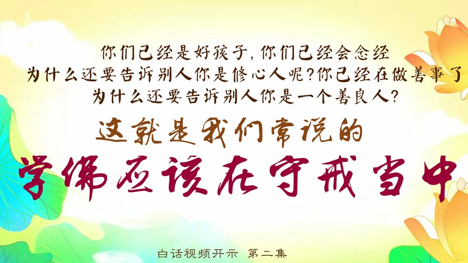 你们已经是好孩子,你们已经会念经,为什么还要告诉别人你是修心人呢?你已经在做善事了,为什么还要告诉别人你是一个善良人?这就是我们常说的学佛应该在守戒当中。