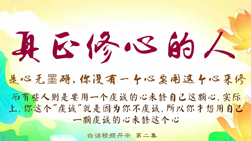 真正修心的人是心无罣碍,你没有一个心要用这个心来修,而有些人则是要用一个虔诚的心来修自己这颗心,实际上,你这个“虔诚”就是因为你不虔诚,所以你才想用自己一颗虔诚的心来修这个心。