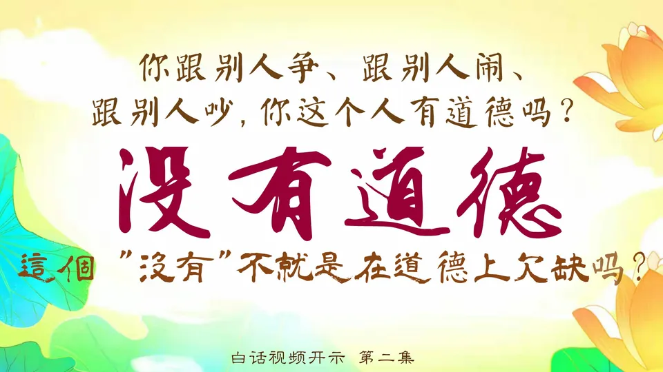 什么叫功德?道德有没有标准?你跟别人争、跟别人闹、跟别人吵,你这个人有道德吗?没有道德。这个 “没有”不就是在道德上欠缺吗?
