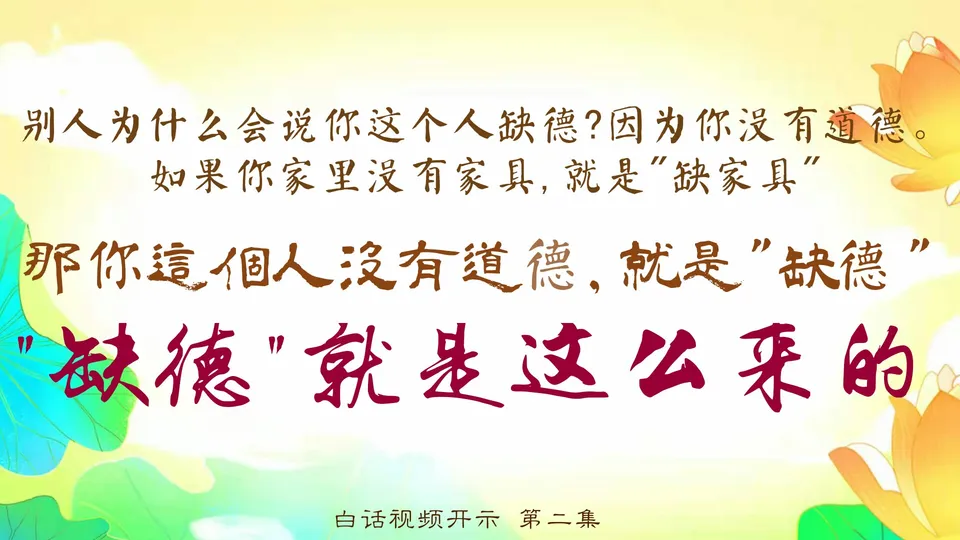 别人为什么会说你这个人缺德?因为你没有道德。如果你家里没有家具,就是“缺家具”;那你这个人没有道德,就是“缺德”,“缺德”就 是这么来的。