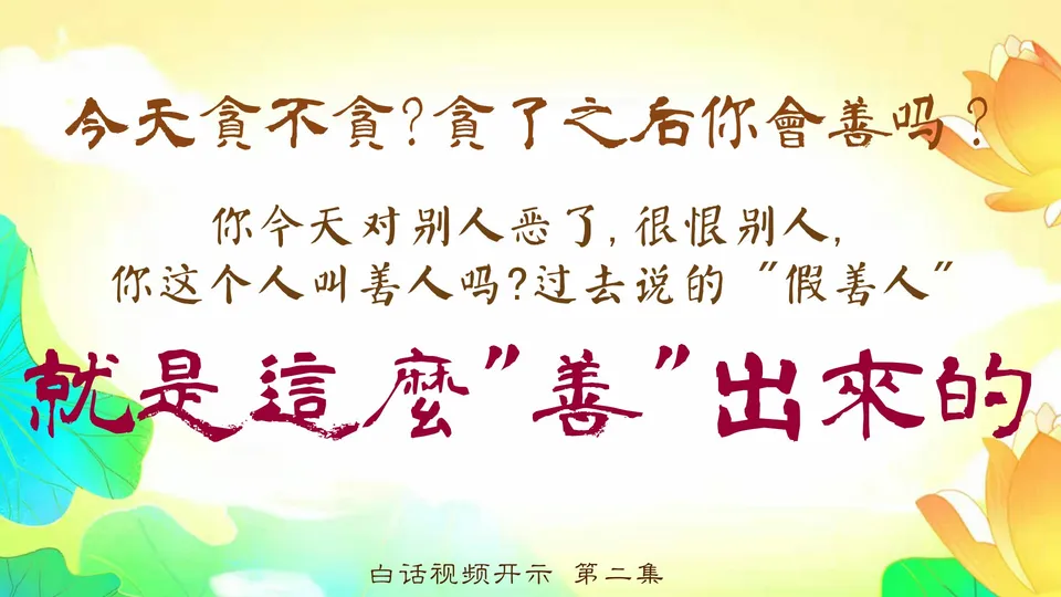 你今天贪不贪?贪了之后你会善吗?你今天对别人恶了,很恨别人,你这个人叫善人吗?过去说的 “假善人”,就是这么 “善”出来的。