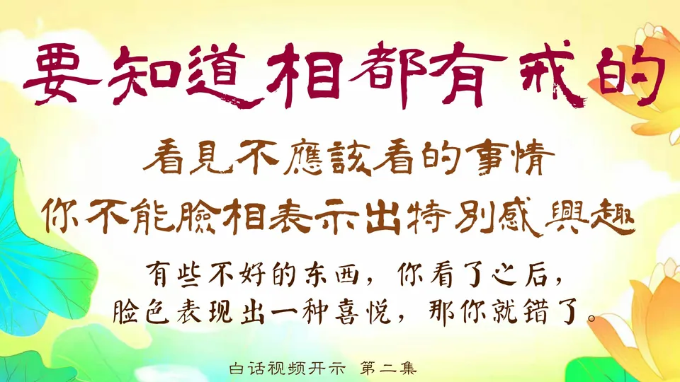 要知道相都有戒的,看见不应该看的事情,你不能脸相表示出特别感兴趣。有些不好的东西,你看了之后,脸色表现出一种喜悦,那你就错了。