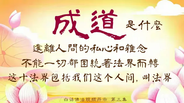 成道是什么?远离人间的私心和杂念,不能一切都围绕着法界而转。这十法界包括我们这个人间,叫法界。