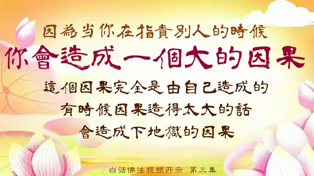 因为当你在指责别人的时候,你会造成一个大的因果,这个因果完全是由自己造成的,有时候因果造得太大的话,会造成下地狱的因果。