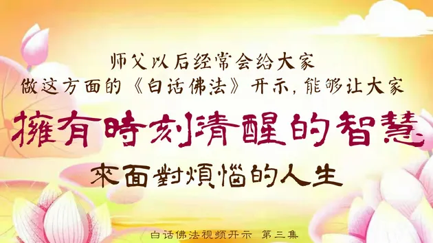 师父以后经常会给大家做这方面的《白话佛法》开示,能够让大家拥有时刻清醒的智慧,来面对烦恼的人生。