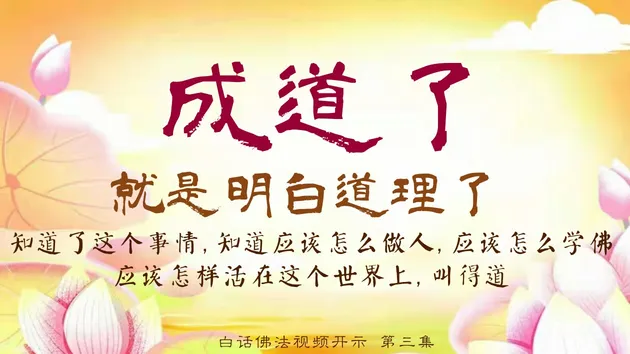 别人说“你成道了”,什么叫成道?成道了就是明白道理了,知道了这个事情,知道应该怎么做人,应该怎么学佛,应该怎样活在这个世界上,叫得道。