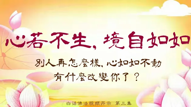 “心若不生,境自如如”,别人再怎么样,心如如不动,有什么改变你了?举个简单例子,你在家里拿个手机照自己,不管边上人在跟你说什么话,你都没有反应,是不是如如不动?别人说:“你知道吗?这个产品好得不得了,可以让你发财,可以让你做什么……”你照着镜子看一看,如如不动,对你产生什么效果了?没有,什么都没有产生。你被他说得心一动,接下来你的表情马上感觉自己像百万富翁、千万富翁了,因为你的心已经动到这里面去了。