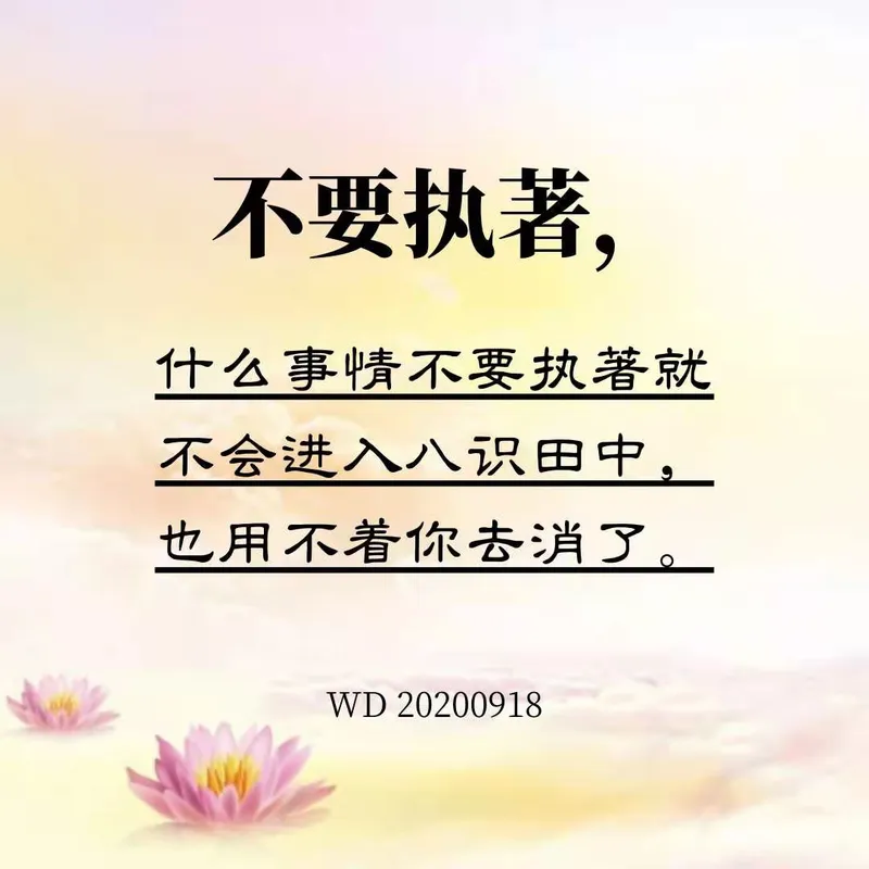 【答】不要执著,什么事情不要执著就不会进入八识田中,也用不着你去消了。你对这个男的执著,好了,进入八识田了;你痛苦了一下,进入八识田;你幸福过头了,进入八识田;骨头轻了,进入八识田了(感恩师 父)。