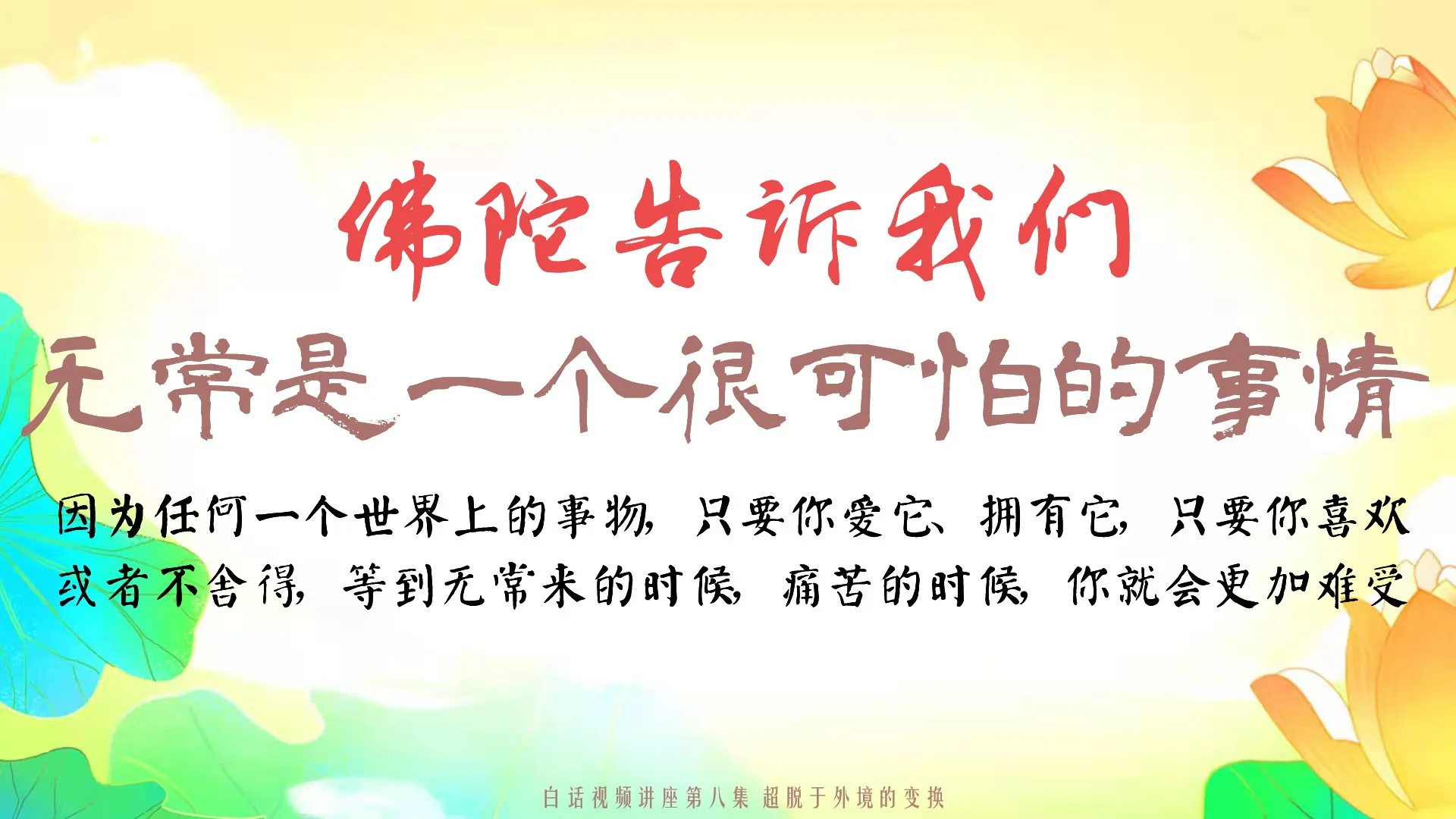 佛陀告诉我们,无常是一个很可怕的事情,因为任何一个世界上的事物,只要你爱它、拥有它,只要你喜欢或者不舍得,等到无常来的时候,痛苦的时候,你就会更加难受。