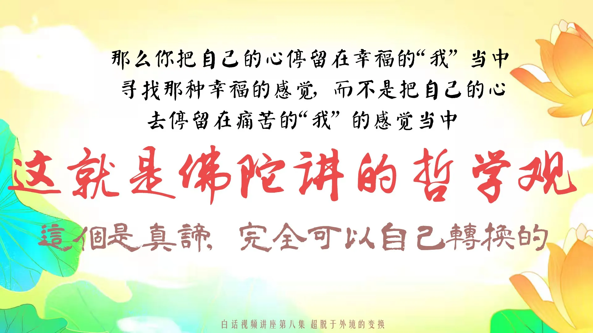 那么你把自己的心停留在幸福的“我”当中,寻找那种幸福的感觉,而不是把自己的心去停留在痛苦的“我”的感觉当中,这就是佛陀讲的哲学观,这个是真谛,完全可以自己转换的。