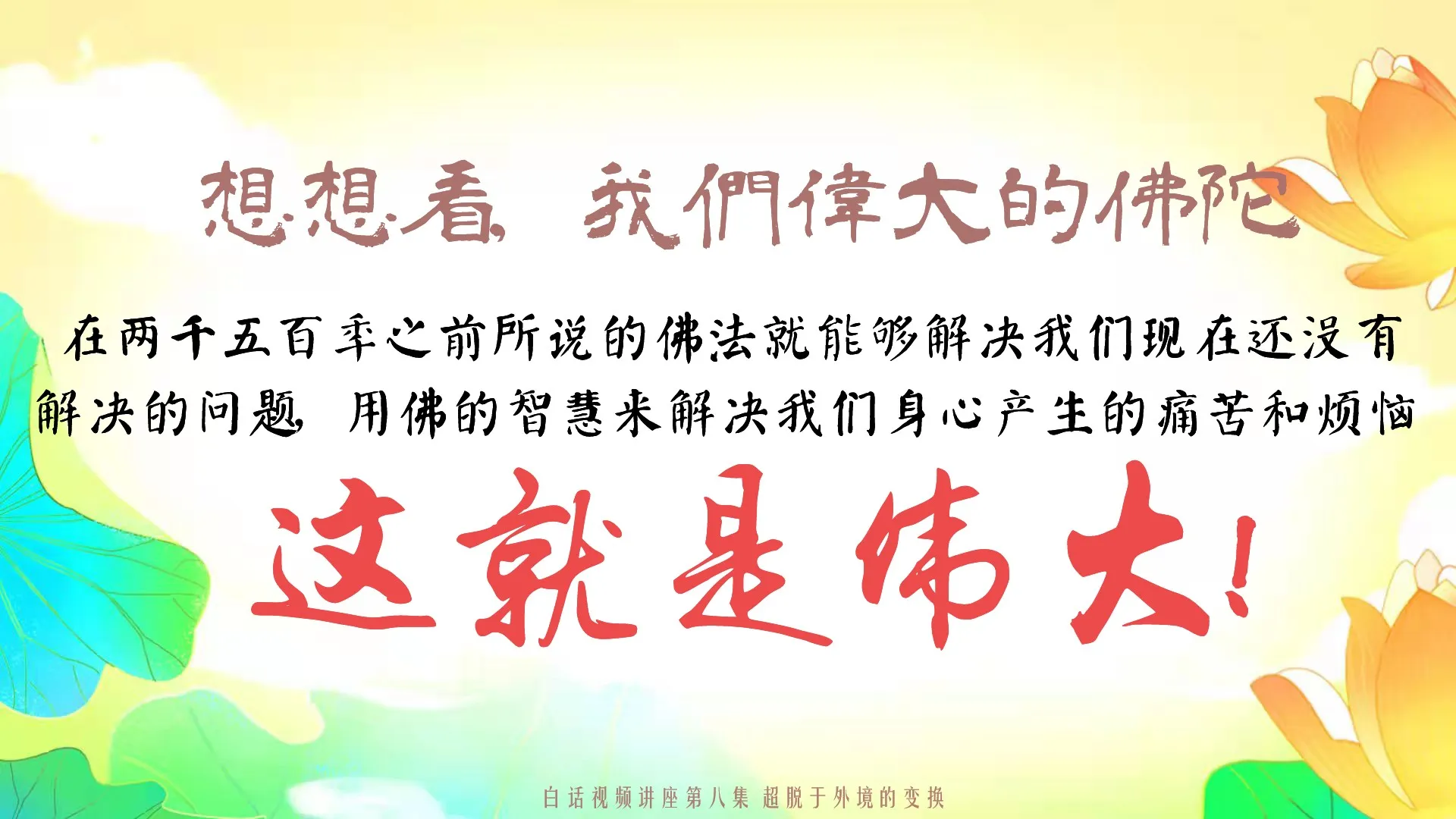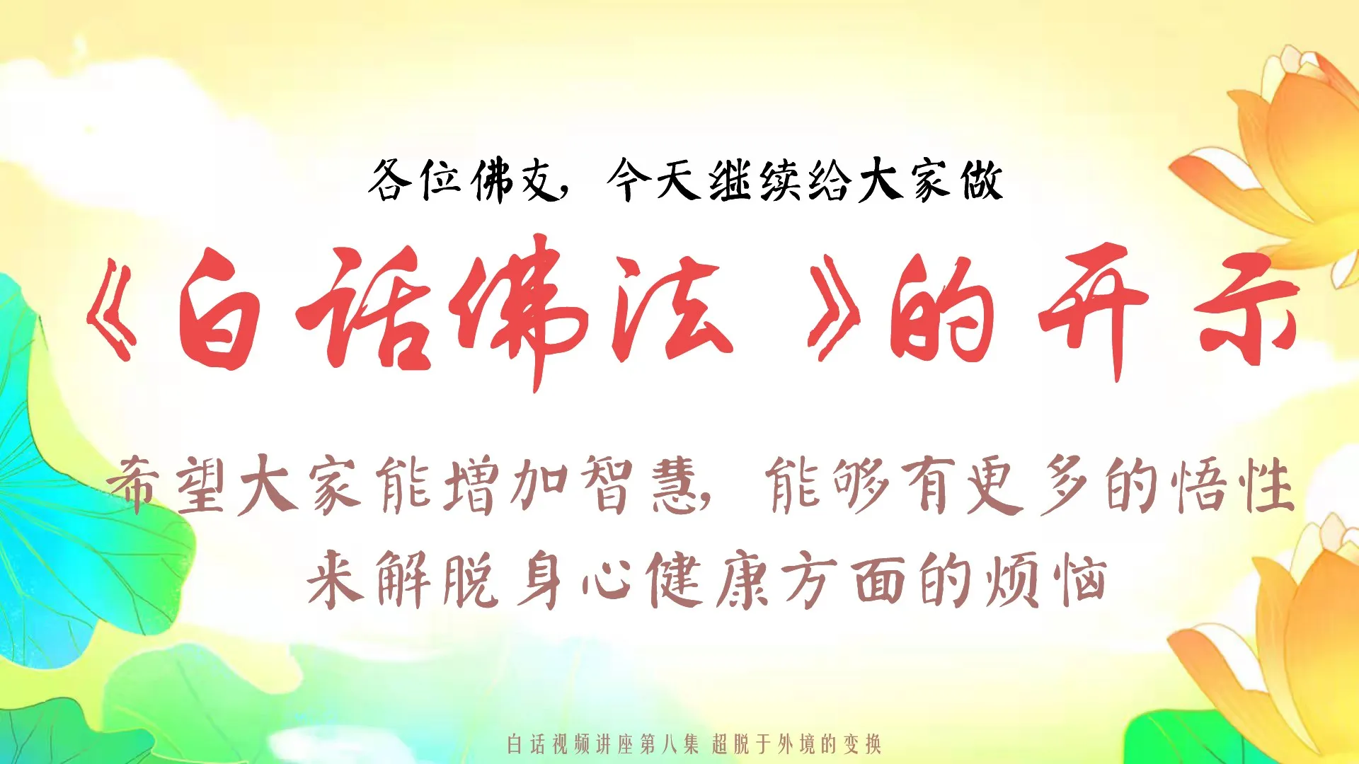 各位佛友,今天继续给大家做《白话佛法》的开示,希望大家能增加智慧,能够有更多的悟性来解脱身心健康方面的烦恼。