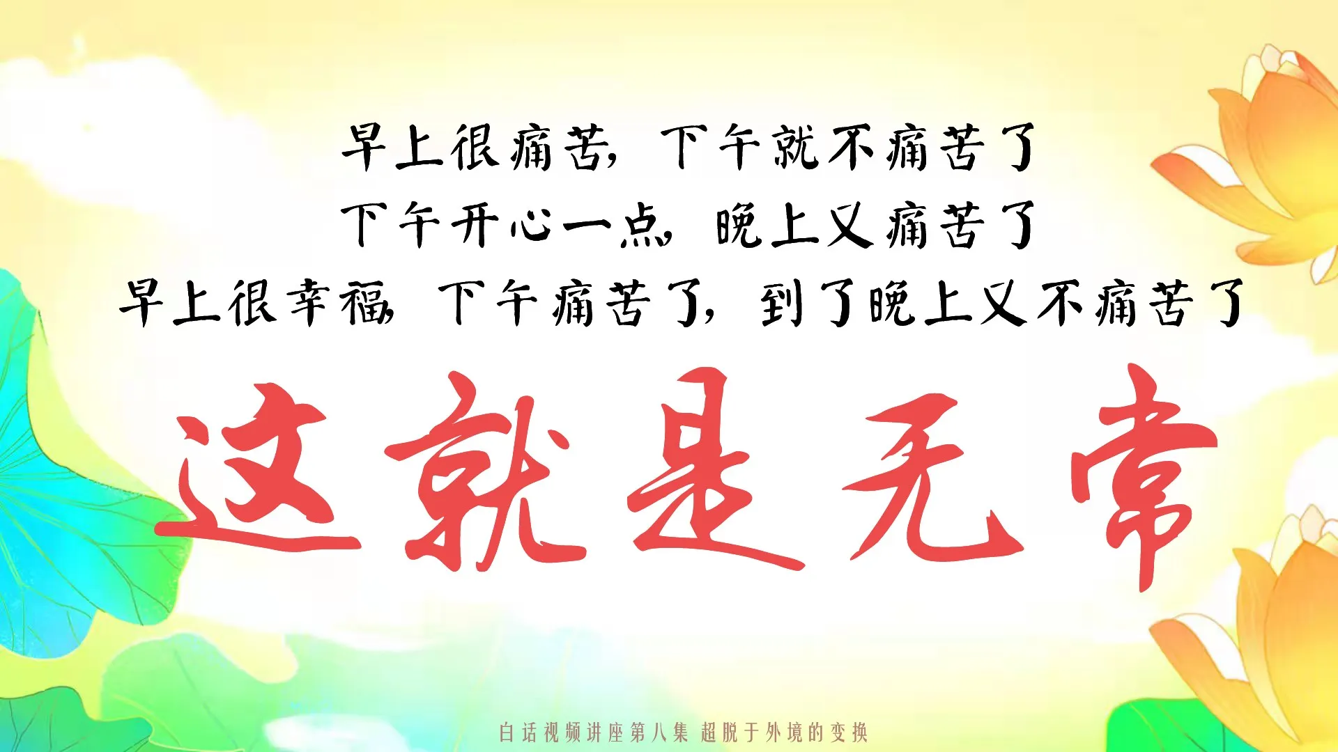 早上很痛苦,下午就不痛苦了;下午开心一点,晚上又痛苦了;早上很幸福,下午痛苦了,到了晚上又不痛苦了,这就是无常。