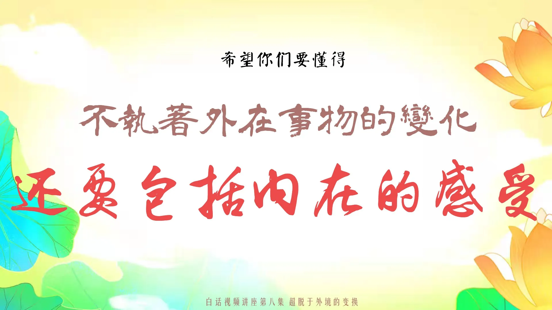 所以希望你们要懂得,不执著外在事物的变化,还要包括内在的感受。