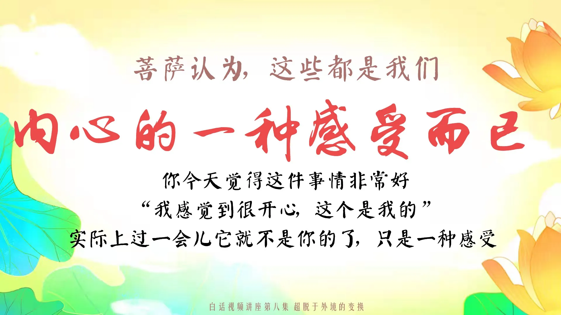 菩萨认为,这些都是我们内心的一种感受而已。你今天觉得这件事情非常好,“我感觉到很开心,这个是我的”,实际上过一会儿它就不是你的了,只是一种感受。