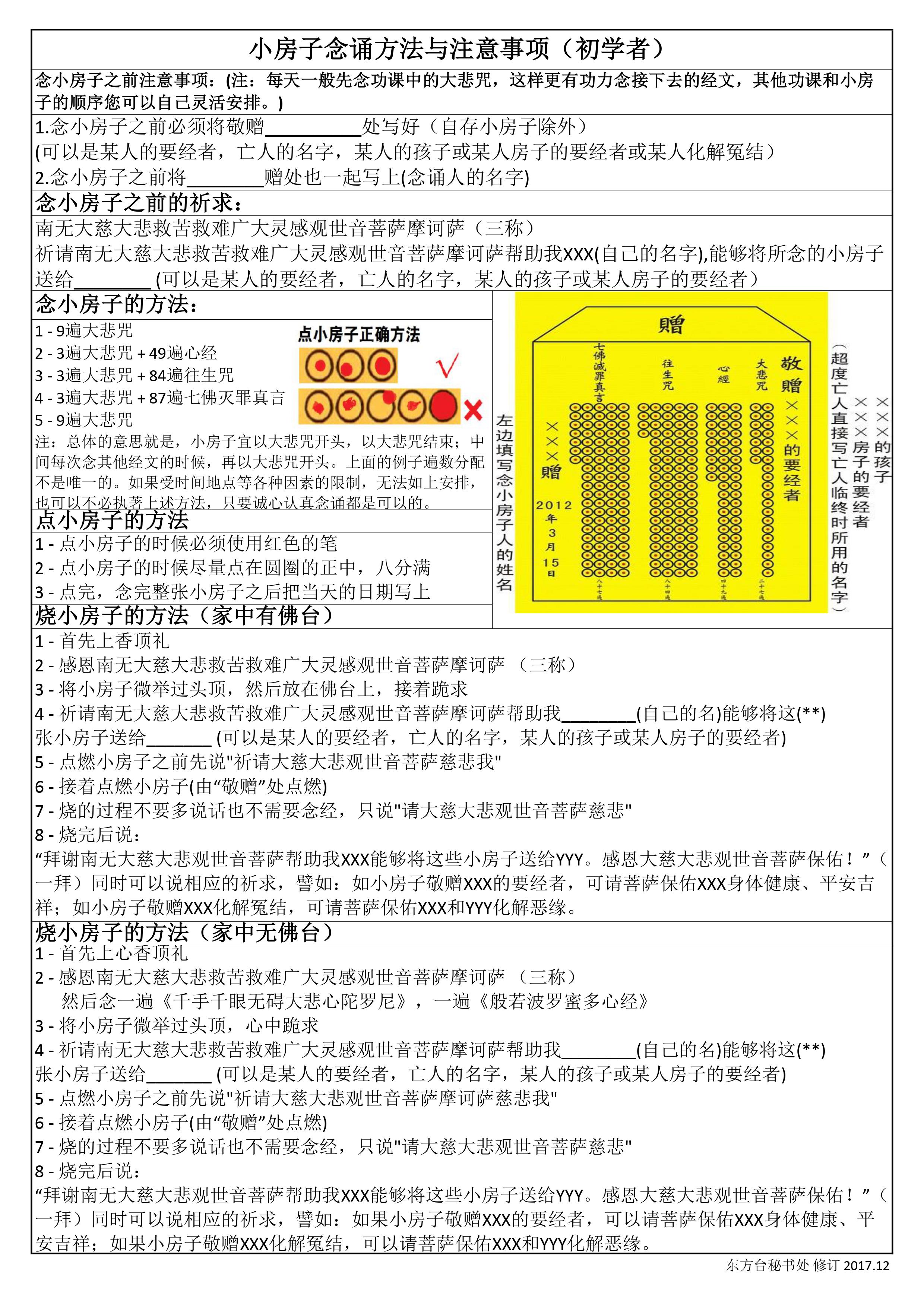 2.念小房子之前将______赠处也一起写上(念诵人的名字)
